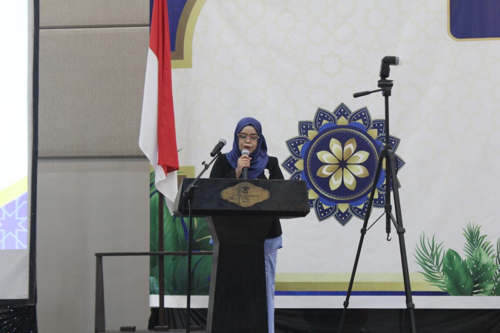 Kaprodi PPG IAIN Manado, Dr. Sulfa Potiua, M.Pd.I, membacakan Surat Keputusan (SK) kelulusan peserta PPG Daljab Batch 1, 2, dan 3 sebagai dasar resmi pengukuhan Guru Profesional.