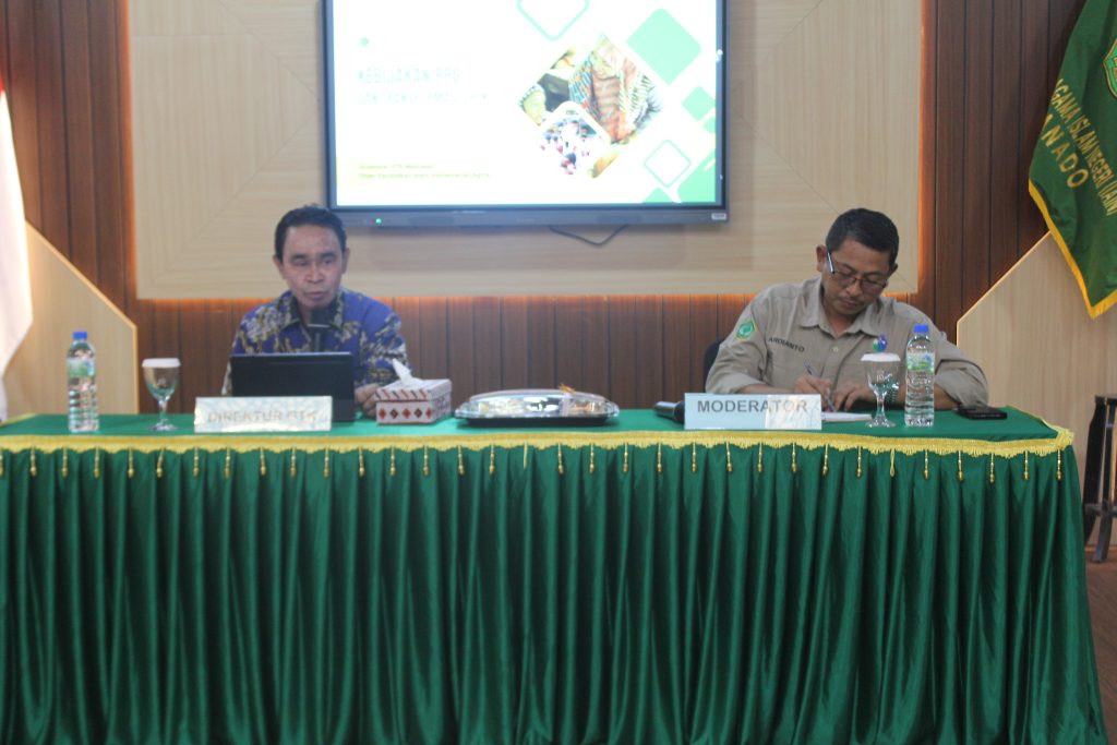 PPG Lembaga Pendidikan Tenaga Kependidikan (LPTK) IAIN Manado menggelar kegiatan Refreshment Penguji Uji Kinerja (UKIN) pada Selasa, 27 Januari 2026, bertempat di Aula Rektorat IAIN Manado. Kegiatan ini mengusung tema “Penguatan Peran dan Kompetensi Penguji UKIN dalam Menjamin Mutu Pelaksanaan PPG” dengan menghadirkan pemateri Direktur GTK Pendis Kementerian Agama RI, Dr. Fesal Musaad, M.Pd dimoderatori oleh Ketua LP2M, Dr. Ardianto, M.Pd.